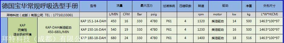 产品详情:德国宝华压缩机KAP-DAH压90-330bar流量450-680l/min