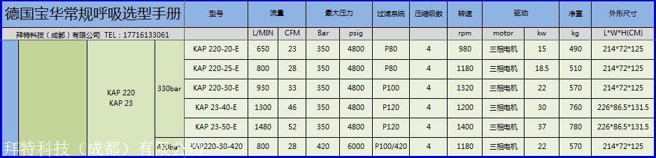 产品详情:德国宝华压缩机KAP220,压力90-420bar流量650-930L/MIN