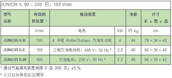 产品详情:特征:JUNIORII在BAUER压缩机中具备很小的尺寸和早熟的技术,具多功能,便携式和确实的特色。